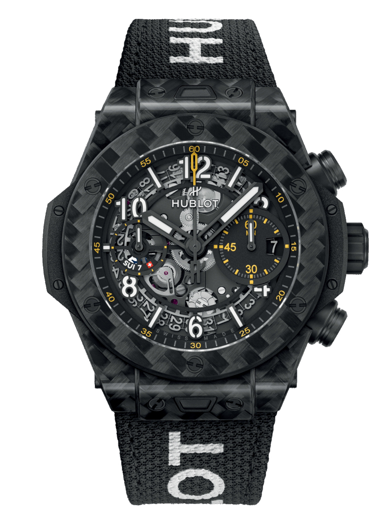 Điểm nhấn đột phá của chiếc đồng hồ này nằm ở chất liệu vỏ Carbon cao cấp. Carbon là vật liệu được ưa chuộng trong ngành hàng không vũ trụ và thể thao tốc độ nhờ vào tỉ lệ độ bền trên trọng lượng vượt trội. Vỏ Carbon không chỉ mang lại vẻ ngoài mạnh mẽ, hiện đại với những vân sợi carbon đặc trưng mà còn cực kỳ nhẹ và bền bỉ, khả năng chống sốc và chống trầy xước ấn tượng. Bề mặt carbon được hoàn thiện tỉ mỉ, tạo hiệu ứng thị giác độc đáo và khả năng bắt sáng ấn tượng, phản ánh tinh thần công nghệ cao của Hublot.