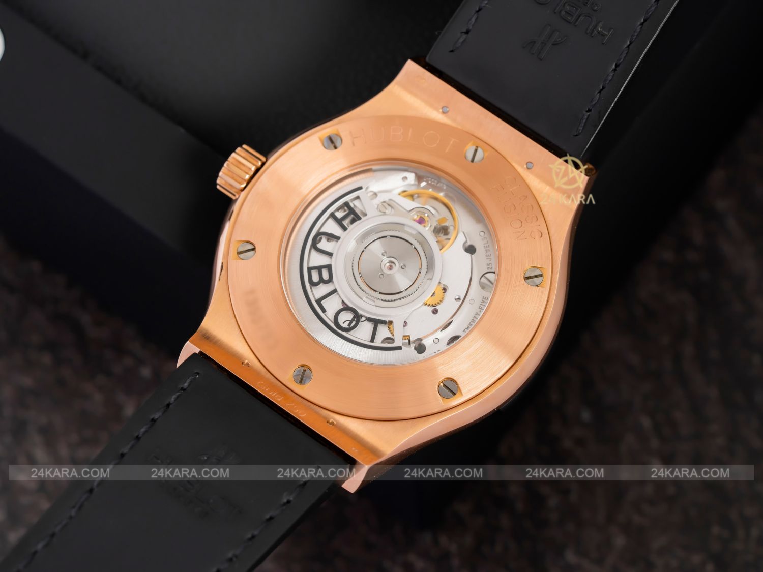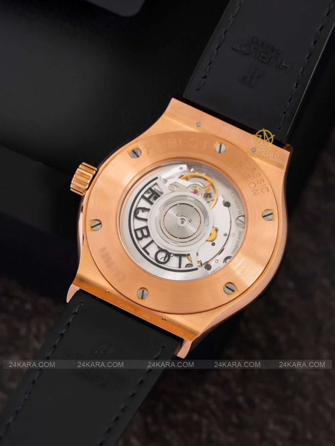 Hublot Classic Fusion 542.OX.1181.LR.1104 sở hữu vẻ ngoài toát lên sự xa hoa, lộng lẫy, sang trọng và quyền lực. Vỏ đồng hồ được làm bằng vàng hồng 18k - kim loại quý và có giá trị bậc nhất trong bất cứ thời điểm nào.