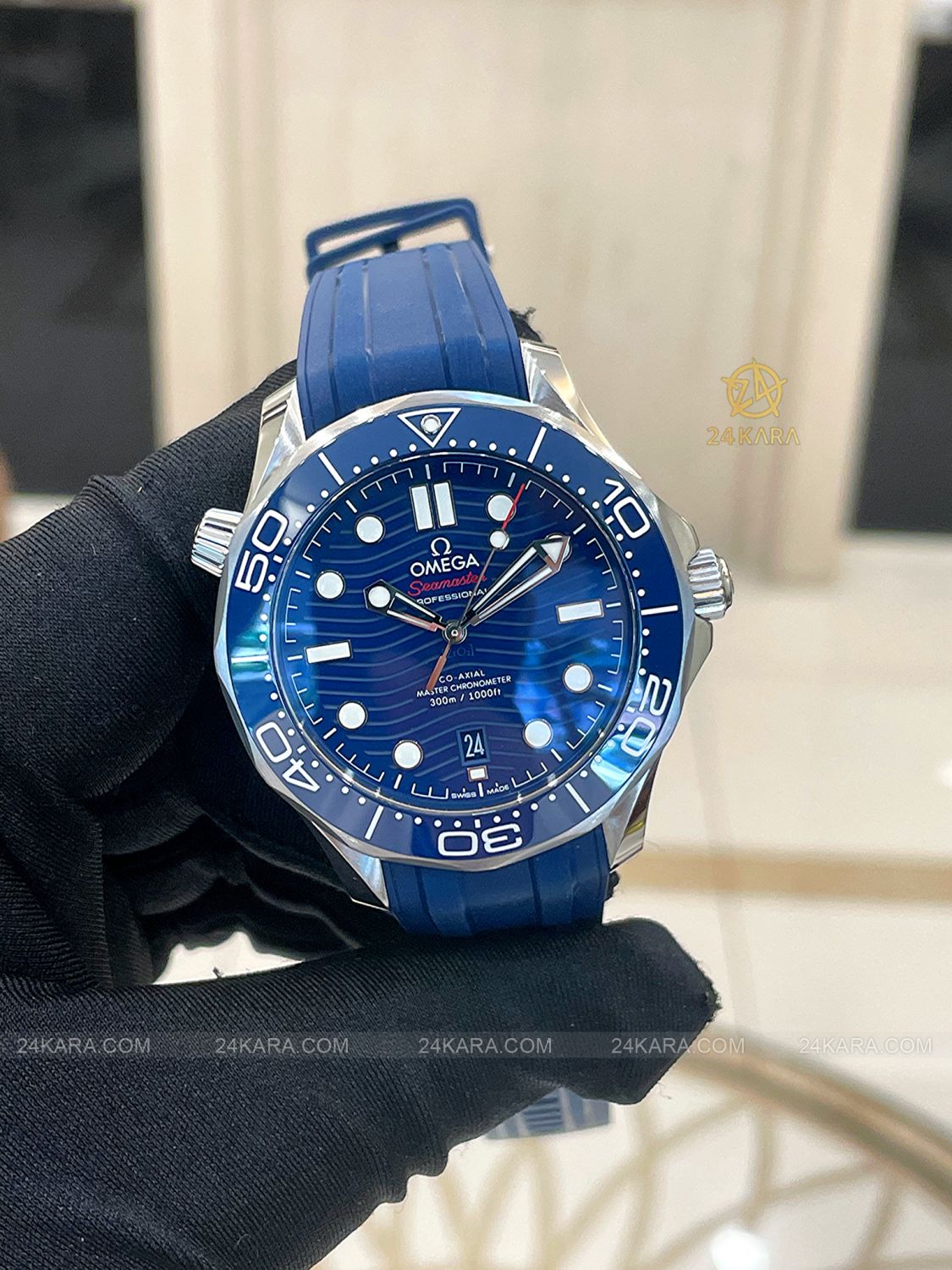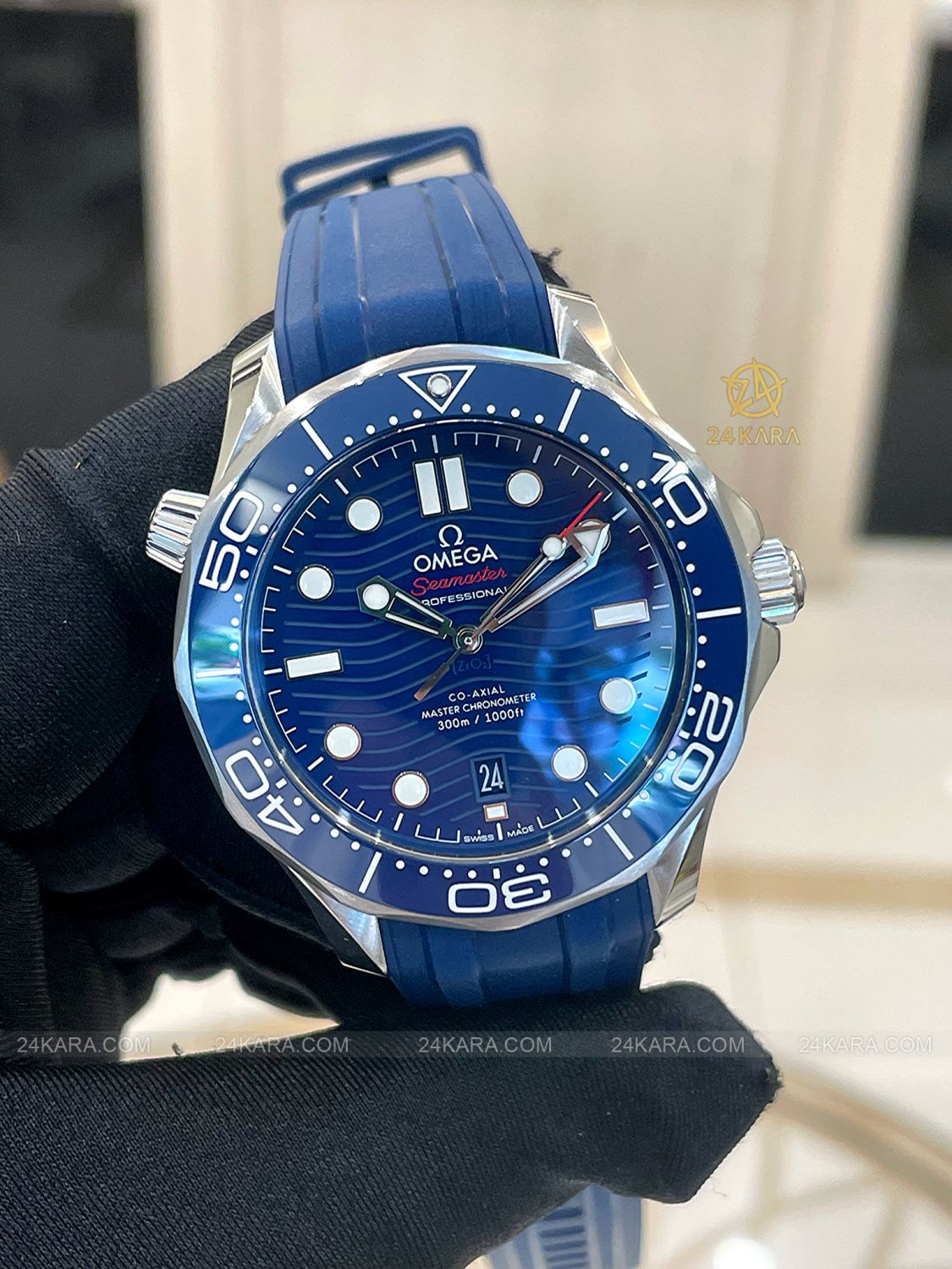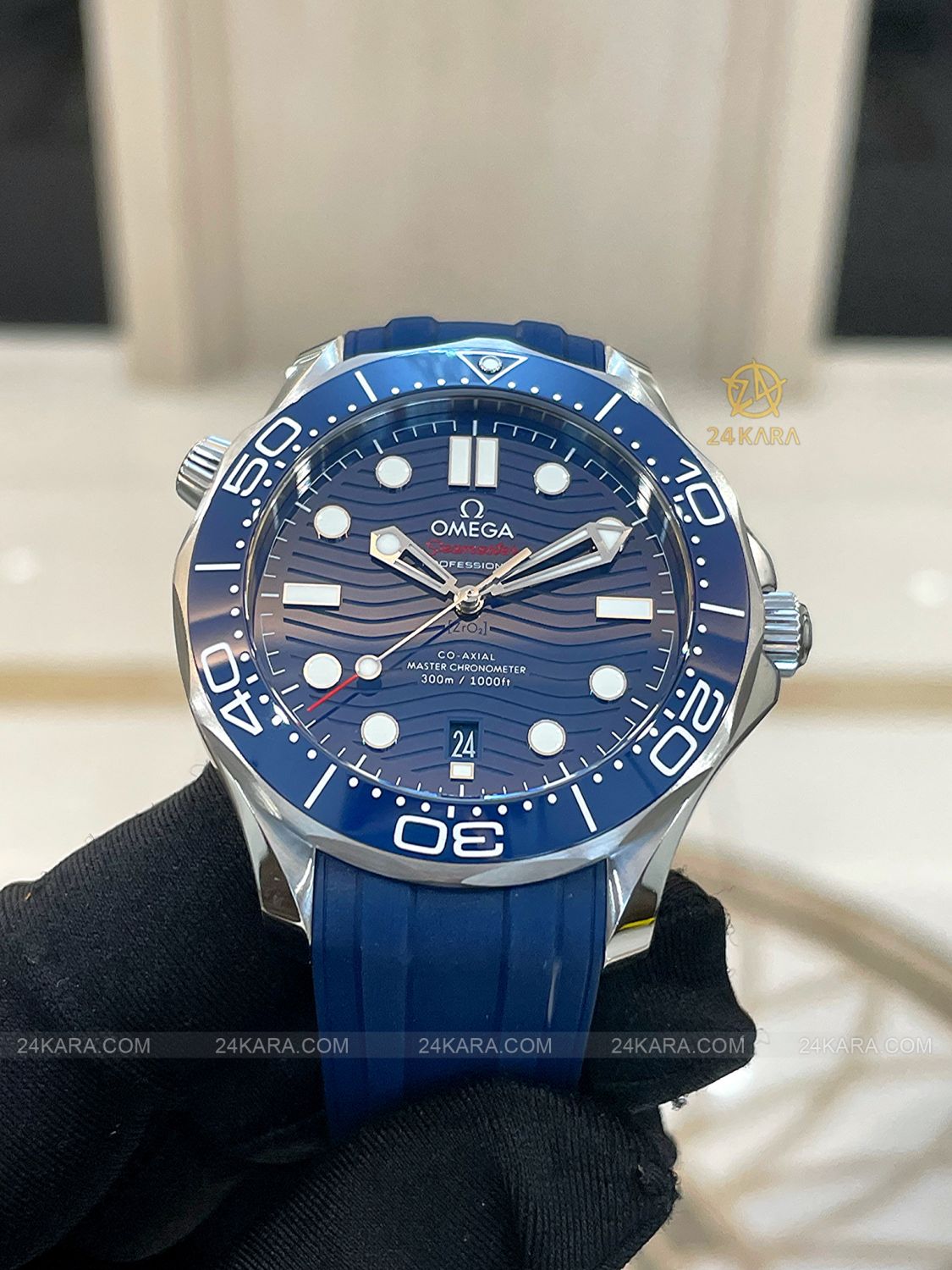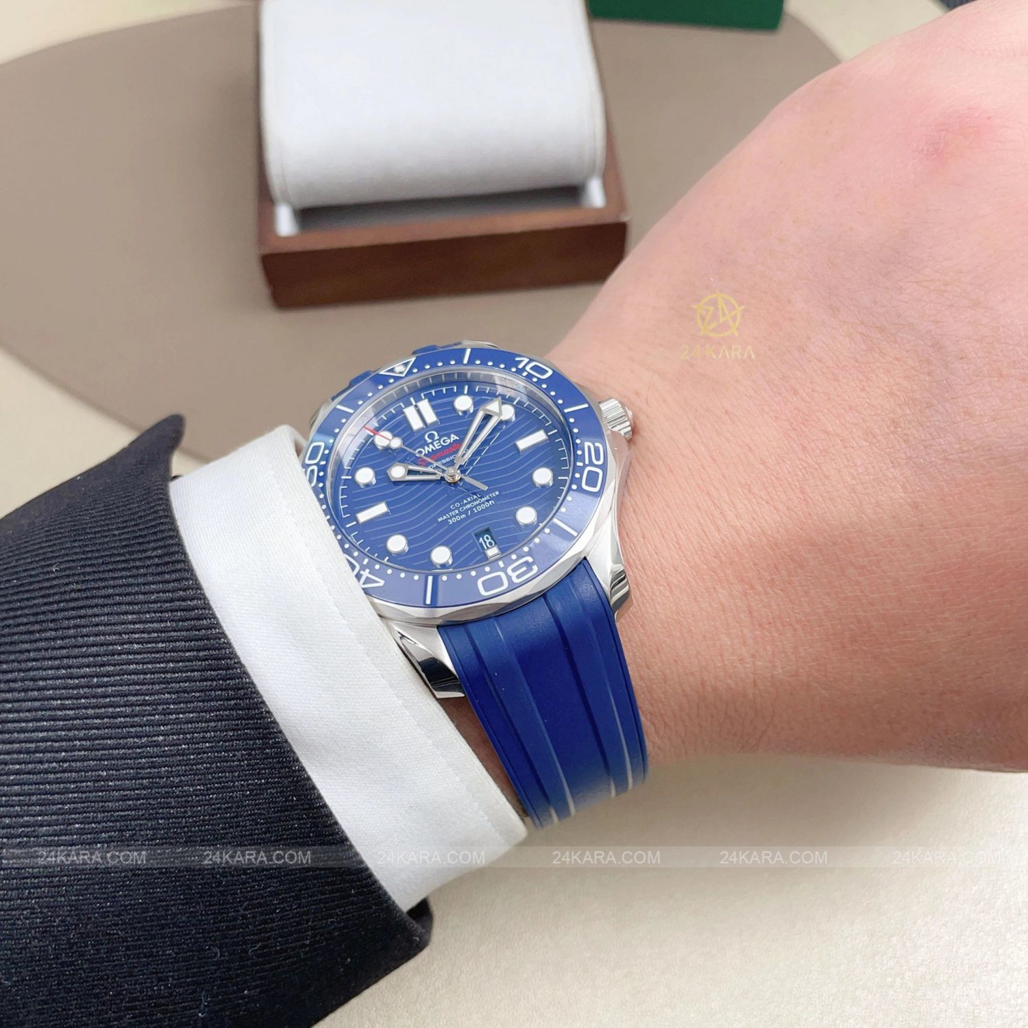 Đồng hồ Omega Seamaster Diver 300M 210.32.42.20.03.001 Mặt Gốm Xanh Dây Cao Su Co-Axial Master Chronometer