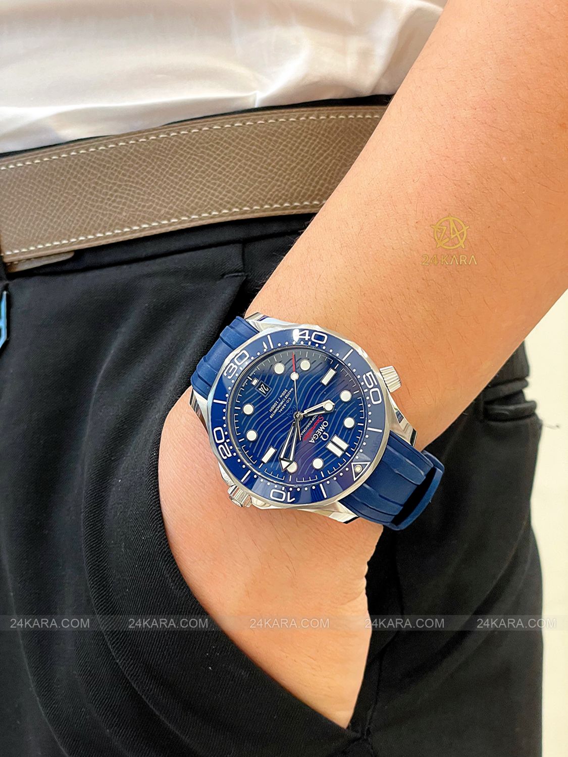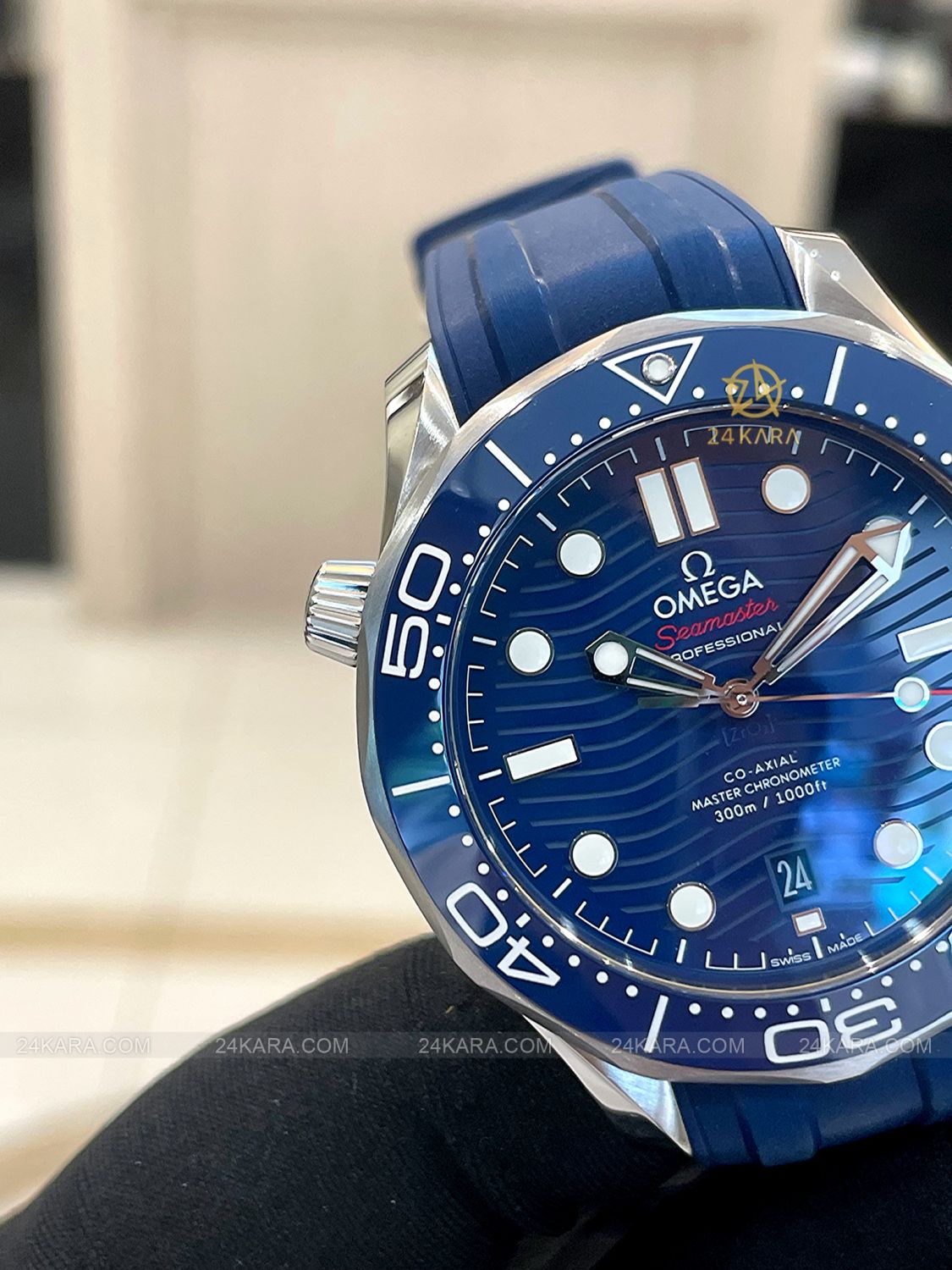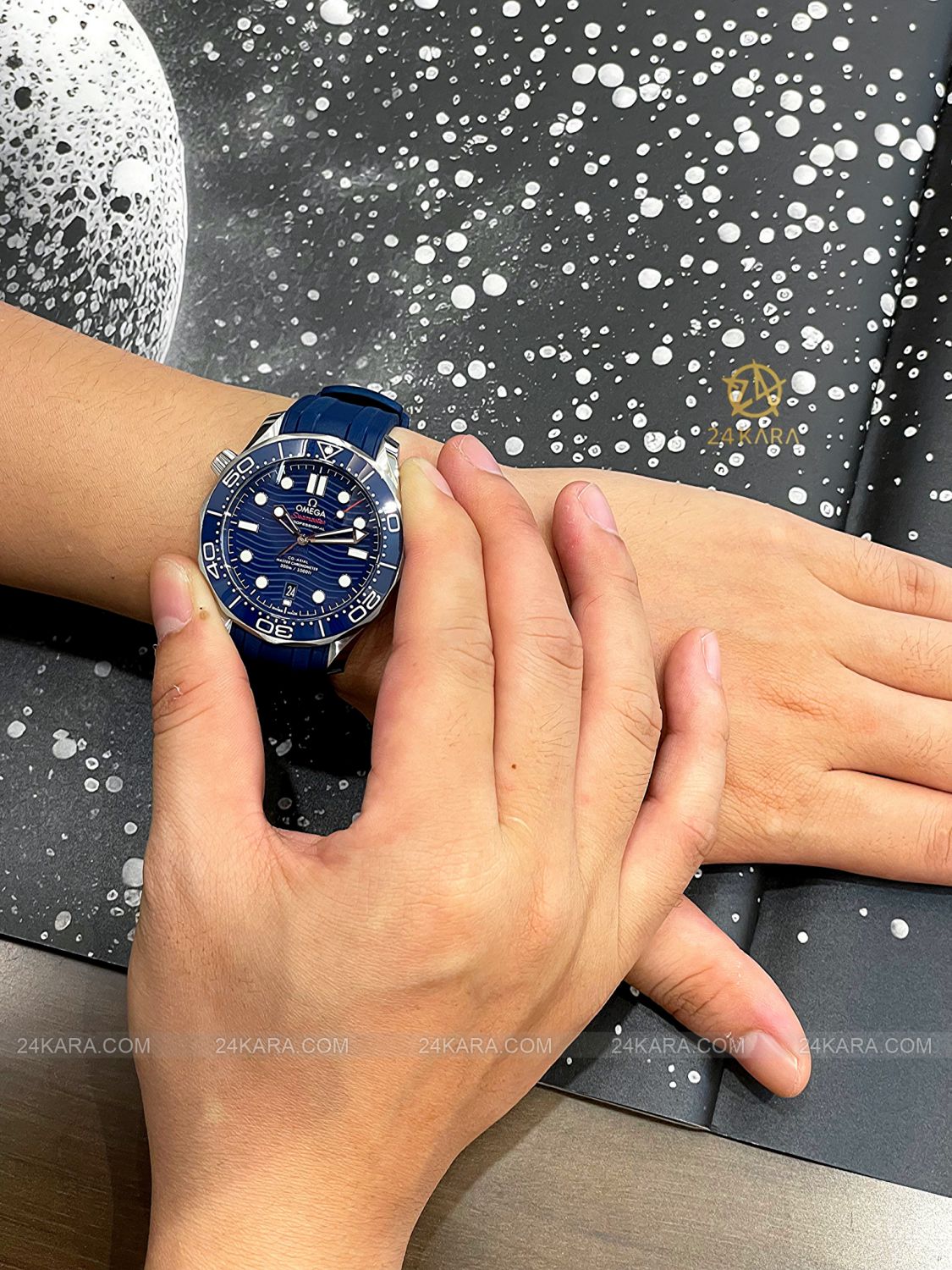 Đồng hồ Omega Seamaster Diver 300M 210.32.42.20.03.001 Mặt Gốm Xanh Dây Cao Su Co-Axial Master Chronometer