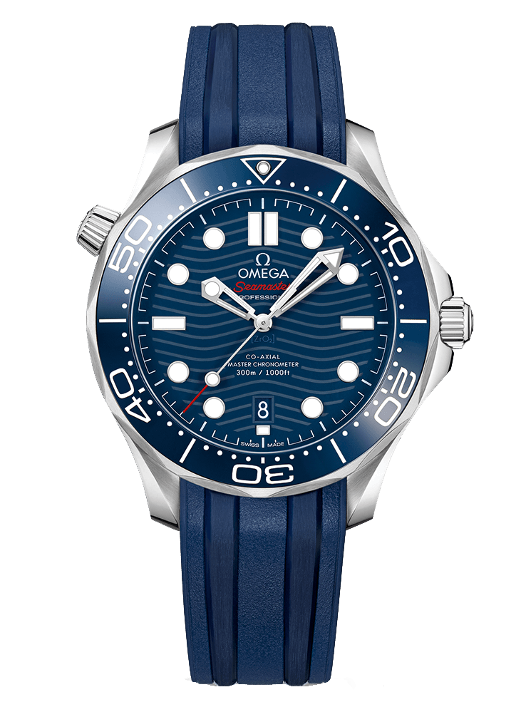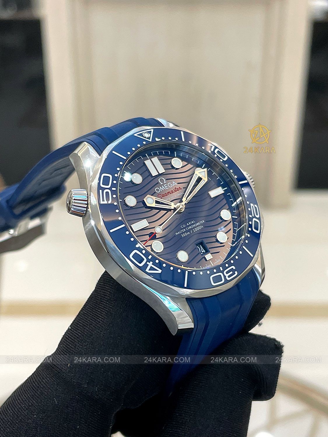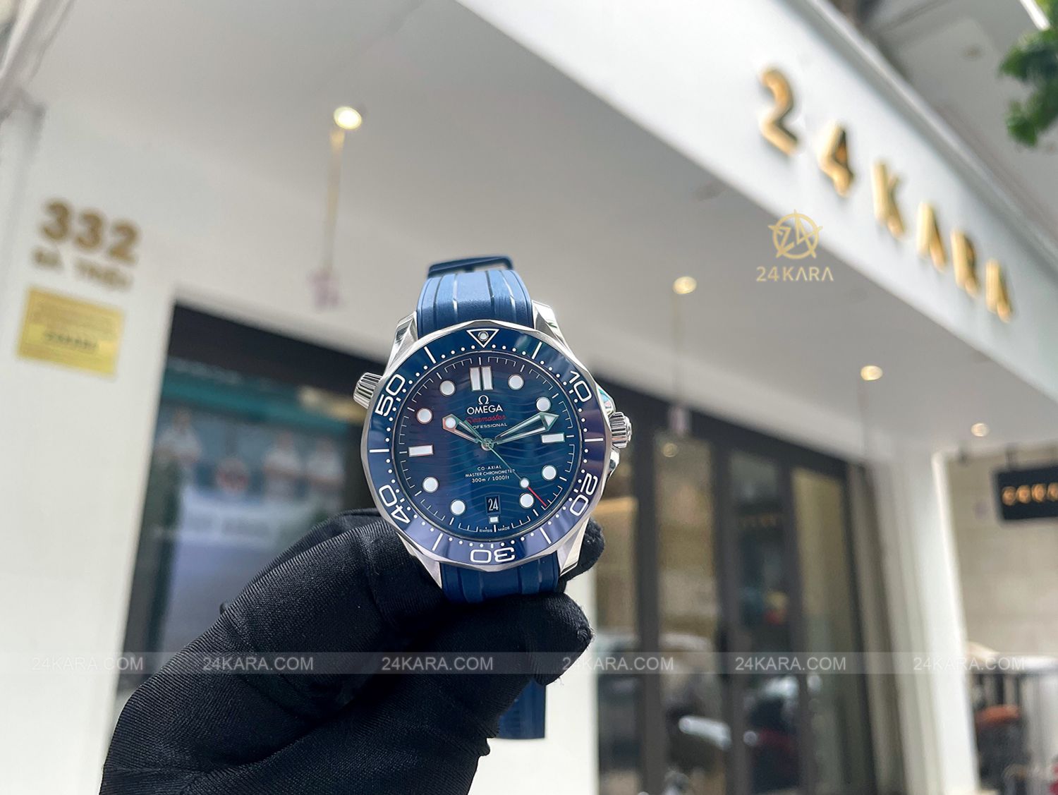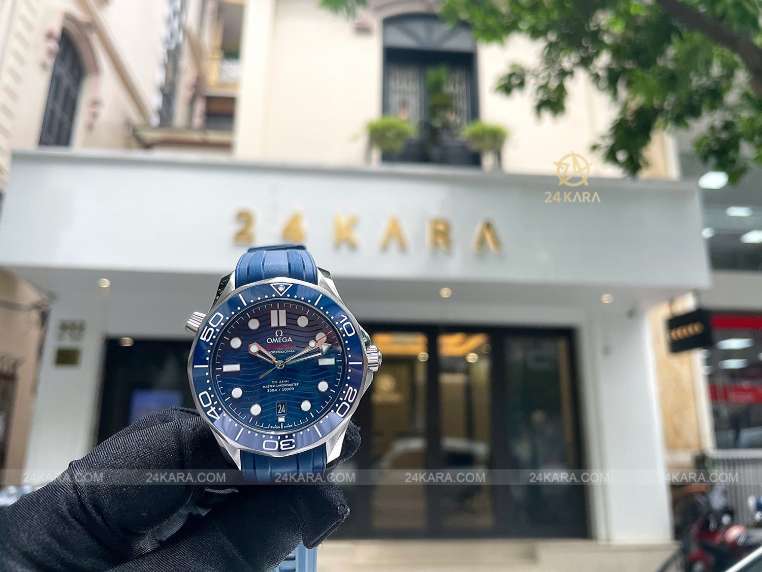 Đồng hồ Omega Seamaster Diver 300M 210.32.42.20.03.001 Mặt Gốm Xanh Dây Cao Su Co-Axial Master Chronometer