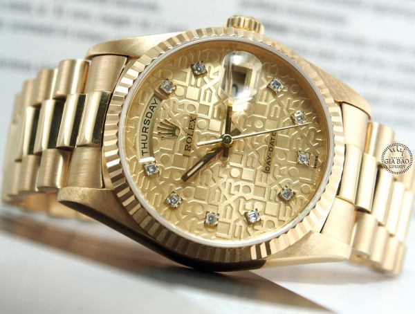 Đồng hồ Rolex Day-Date 36 5 số M18238 18238 Mặt vi tính vàng cọc số kim cương