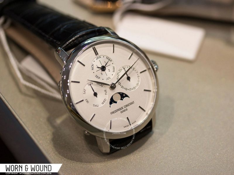 Khi nói về lịch vạn niên trong bộ máy cơ khí, có lẽ 5 con số là ít. Mức giá có thể là 20…50…100 ngàn USD cho một chiếc đồng hồ lịch vạn niên từ một thương hiệu nổi tiếng. Đó là lý do tại sao những gì Frederique Constant đã làm ở đây là khá tuyệt vời: Một lịch vạn niên tự động in – house có giá từ 8,795 USD.
