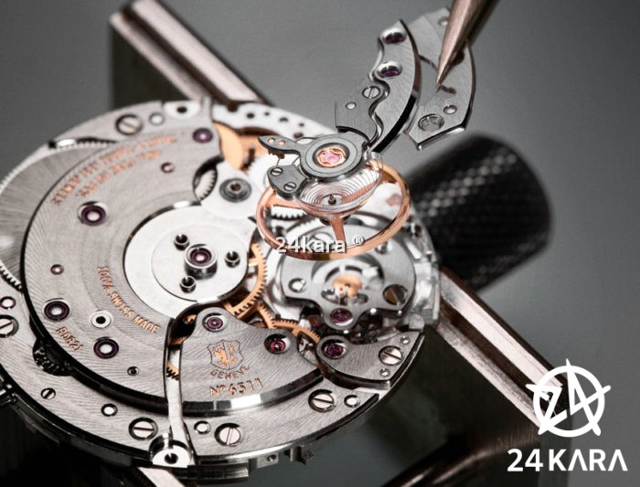 1,Tất cả các bộ phận của bộ máy đồng hồ, bao gồm cả những cơ cấu thêm vào đều phải đáp ứng được những tiêu chuẩn của Văn phòng kiểm tra chất lượng đồng hồ độc lập tại Geneva. Những chi tiết làm từ thép bắt buộc phải được mài và hoàn thiện bề mặt, có góc cạnh rõ ràng, những chiếc đinh ốc phải có góc cạnh rõ ràng, những chi tiết như khe rãnh và vân xoắn ốc cần được mài nhẵn.