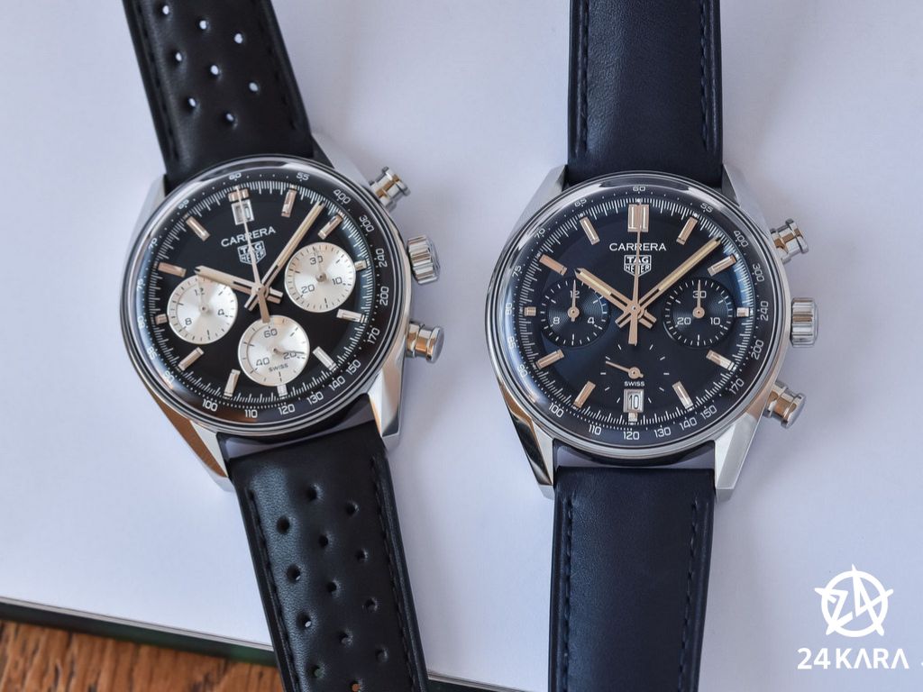 Với đường kính 39mm, những chiếc Carrera mới giữ nguyên ý tưởng ban đầu và cung cấp bố cục mặt số đồng hồ bấm giờ cơ bản (với một vòng xoắn) đồng thời mang lại đặc tính hiệu suất cao bằng cách thêm thang đo tachymetric – có thể đọc được từ nhiều góc độ nhờ viên pha lê định hình trên mặt số.