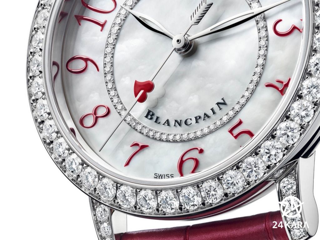 Để kỷ niệm ngày Valentine 2022, thương hiệu Blancpain đã đem đến cho các quý cô một phiên bản đặc biệt, được trang trí bởi những viên kim cương lấp lánh và trái tim màu đỏ lãng mạn được mũi tên thần Cupid đâm xuyên qua. Hãy cùng 24Kara đến với chiếc Blancpain Ladybird Saint 3660B-1954-55A.