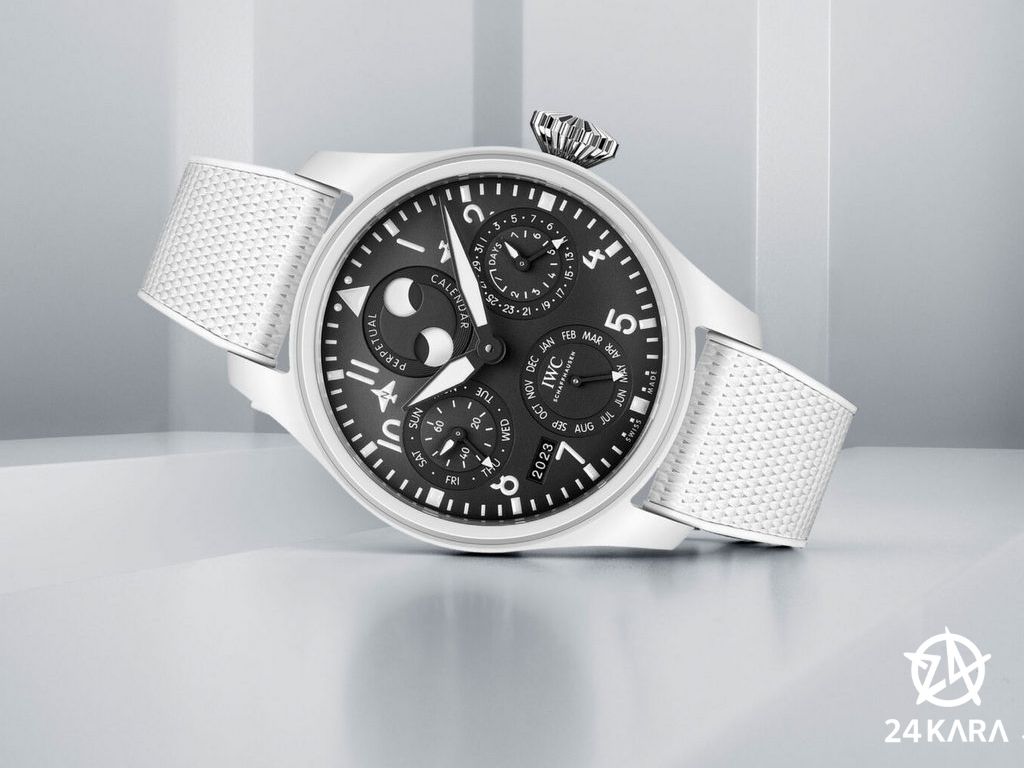 Xuất hiện lần đầu trên cổ tay của ngôi sao F1 Lewis Hamilton, chiếc đồng hồ Pilot's Watch mới được thương hiệu IWC làm mới lại trong 1 phiên bản hoàn toàn bằng gồm trắng mang tên IWC Big Pilot’s Watch Perpetual Calendar TOP GUN Lake Tahoe IW503008.