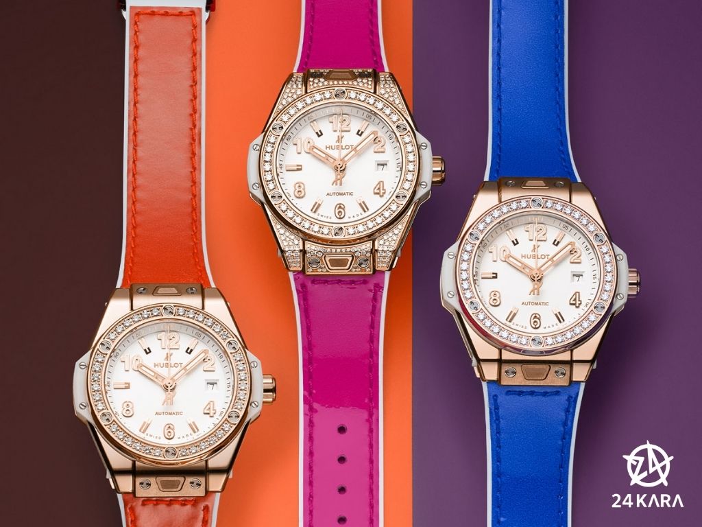 Với lớp vỏ làm bằng thép hoặc vàng hồng, đồng hồ Hublot Big Bang One Click 33mm dành cho phái nữ với kích thước nhỏ gọn hơn, nổi bật với hệ thống One Click thông minh đã được cấp bằng sáng chế cho phép bạn thay đổi dây đeo và cá tính của đồng hồ chỉ trong vài giây mà không cần đến công cụ.