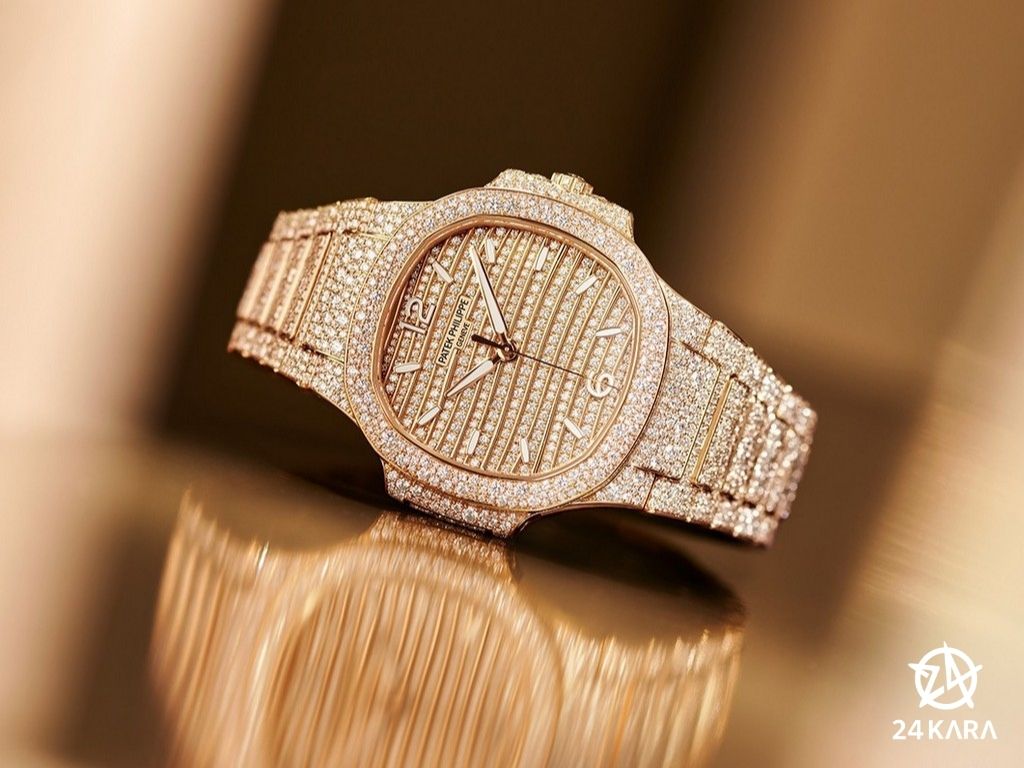 Thiết kế cổ điển của đồng hồ Nautilus không chỉ được các quý ông yêu thích, các đường nét uyển chuyển, tỷ lệ đồng hồ thoải mái cũng thu hút sự chú ý của phái đẹp. Năm nay, Patek Philippe tiếp tục truyền thống tạo ra những chiếc đồng hồ trang sức quý hiếm. Bằng chứng là chiếc đồng hồ Patek Philippe Sport Elegance 7118/1450R-001 với chất liệu vàng hồng mới ở vỏ, viền bezel và dây đeo, đồng thời được khảm đầy những viên kim cương lấp lánh.