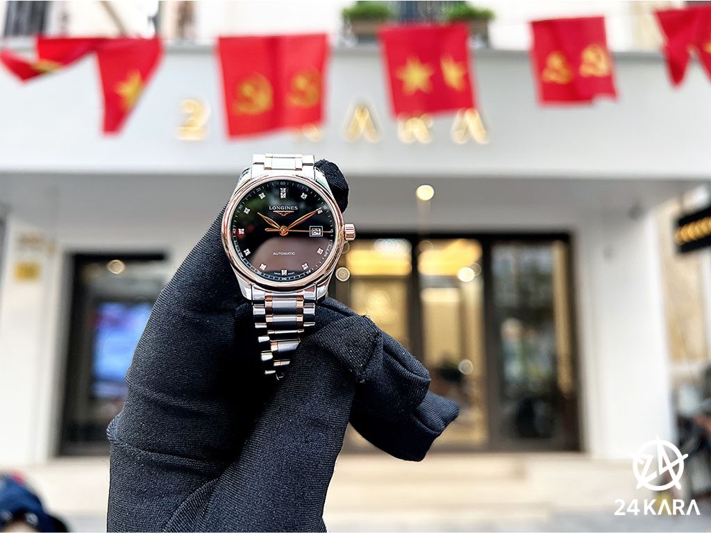 Mẫu Longines Master L2.257.5.59.7 Vàng hồng 18K Mặt đen nạm kim cương được 24Kara tuyển chọn dành riêng cho những quý cô yêu vẻ đẹp cổ điển, tinh tế nhưng vẫn mong muốn một dấu ấn sang trọng rất riêng.